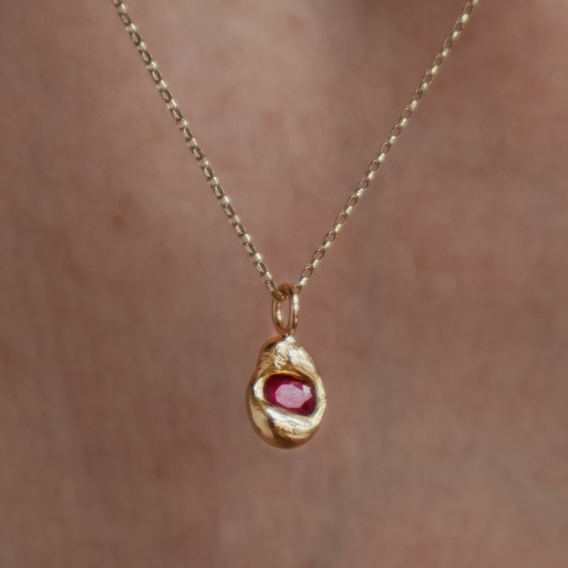 Molten Pendant - 18ct Gold - Oval Ruby