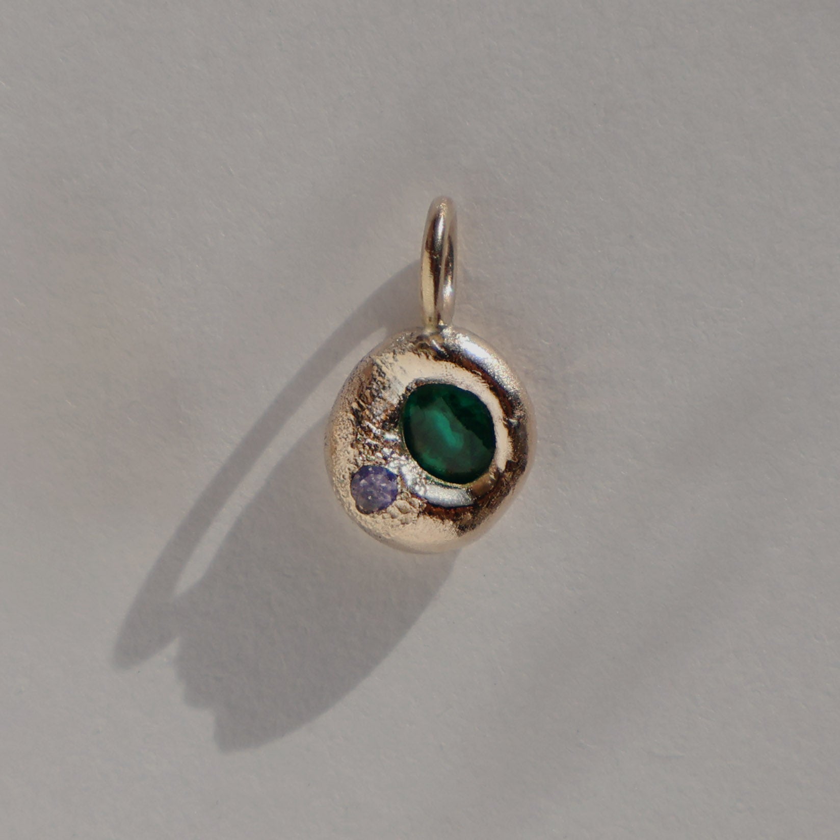 Molten Pendant - 9ct Gold - Round Emerald with Tanzanite - No Chain