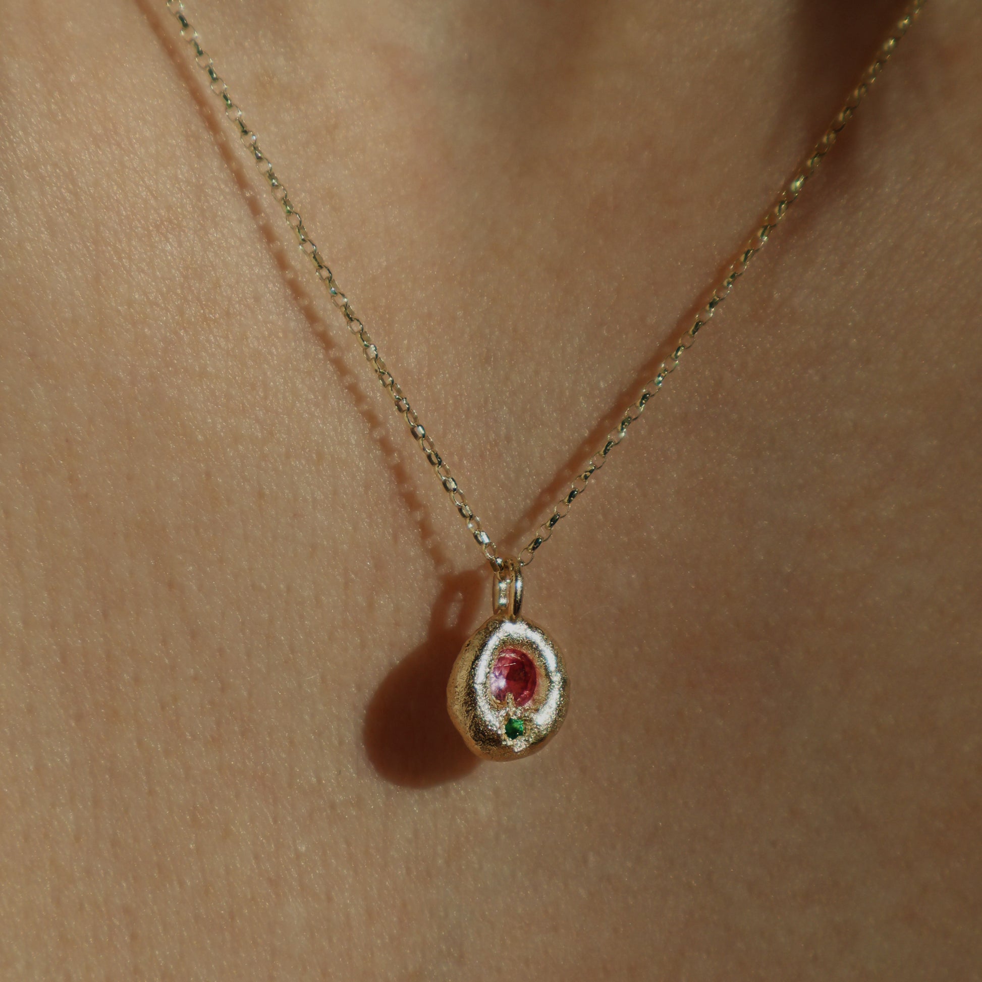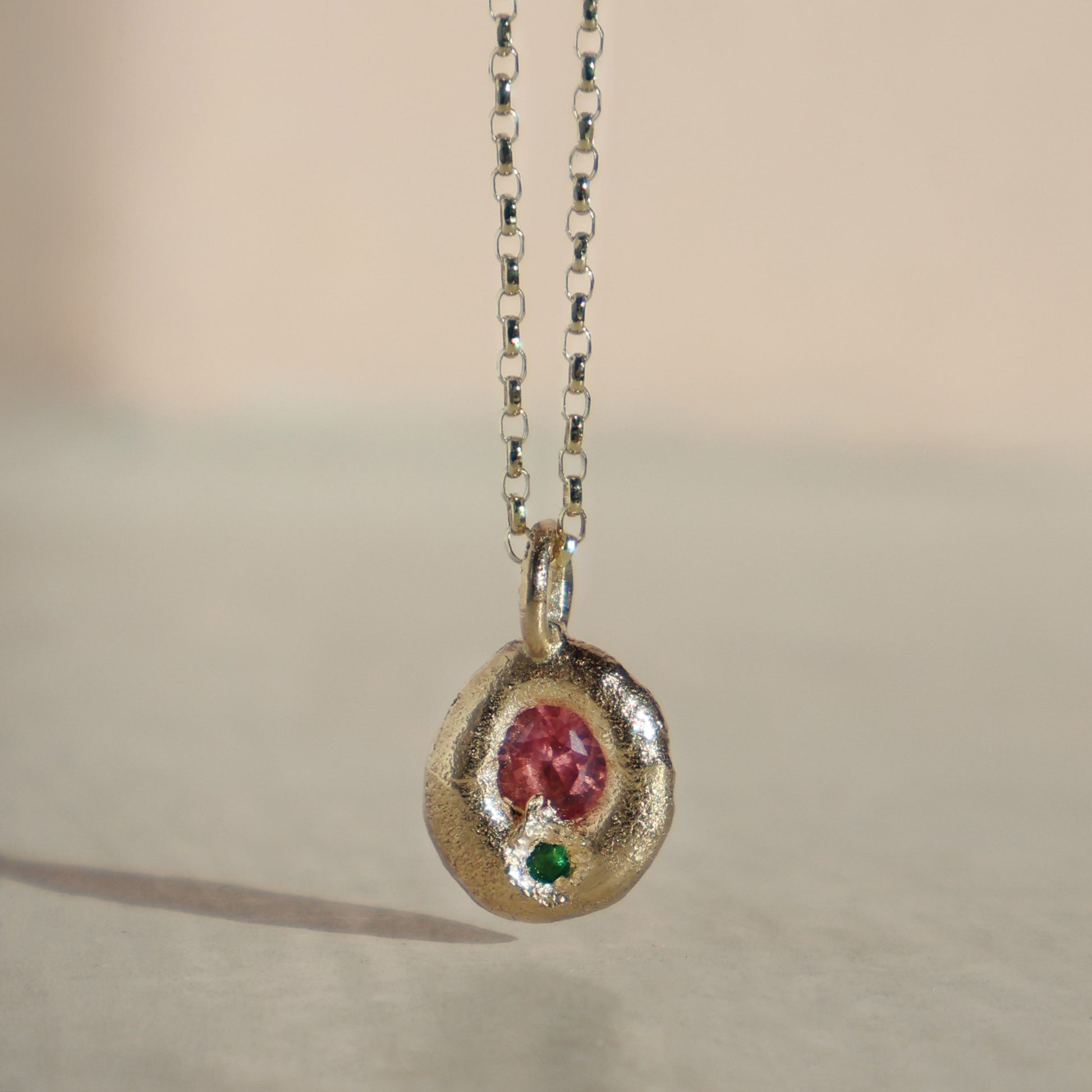Molten Pendant - 9ct Gold - Round Pink Sapphire with Emerald