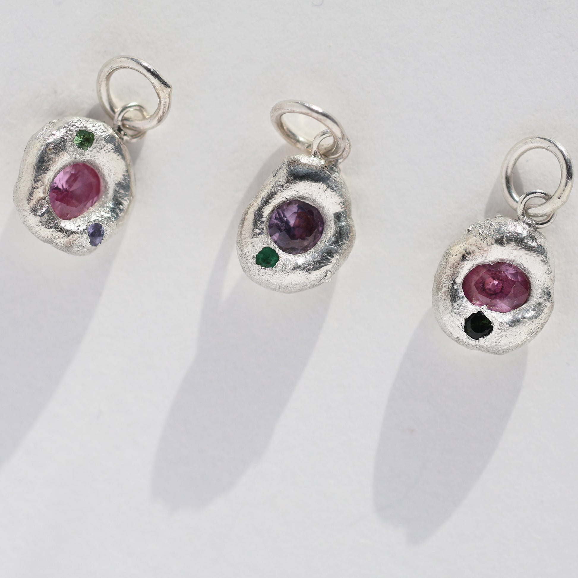 Molten Pendant - Silver - Purple Sapphire with Emerald - No Chain