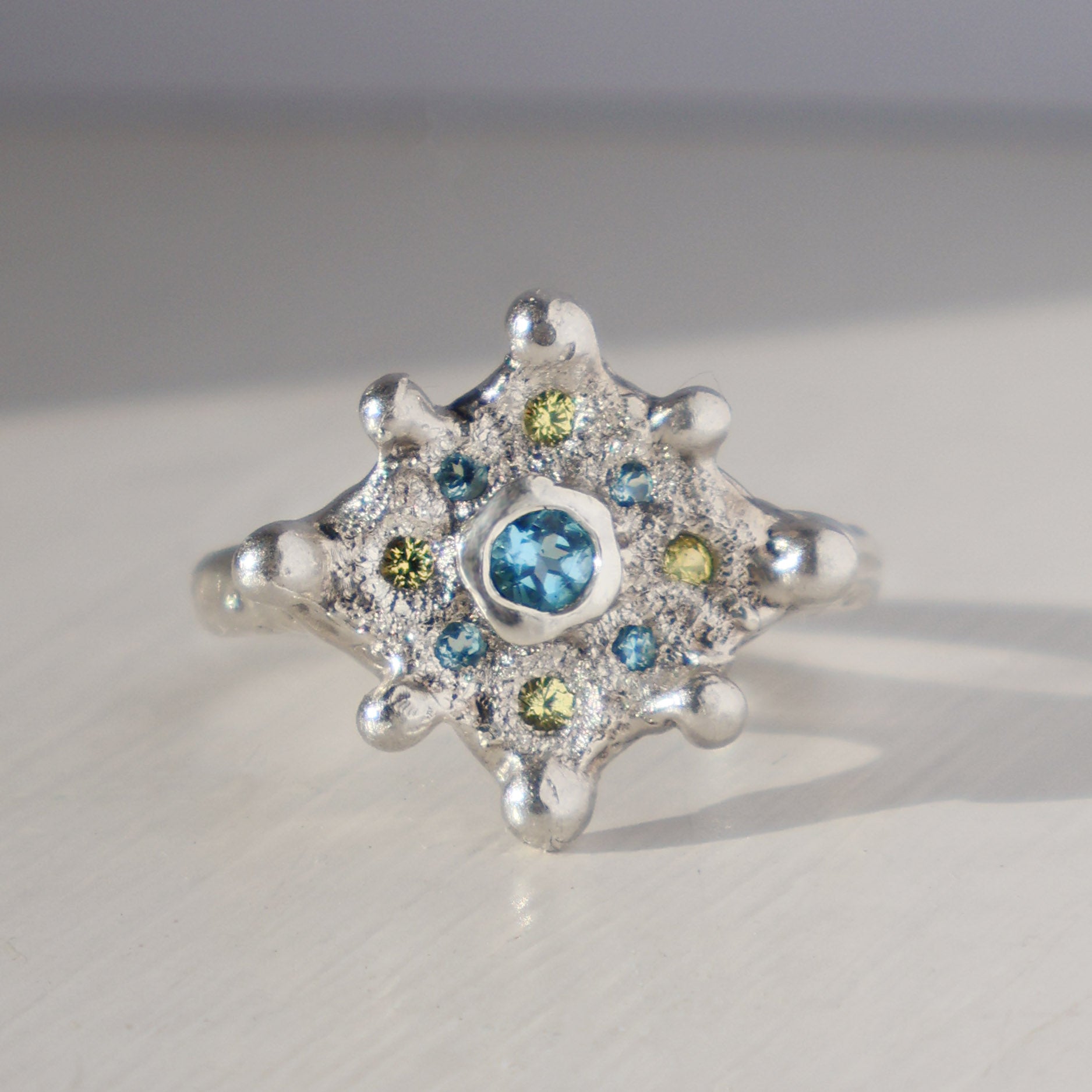Solstice Ring - Silver - Blue Topaz and Yellow Sapphire - Size O - P (US size 7 1/2 - 8)